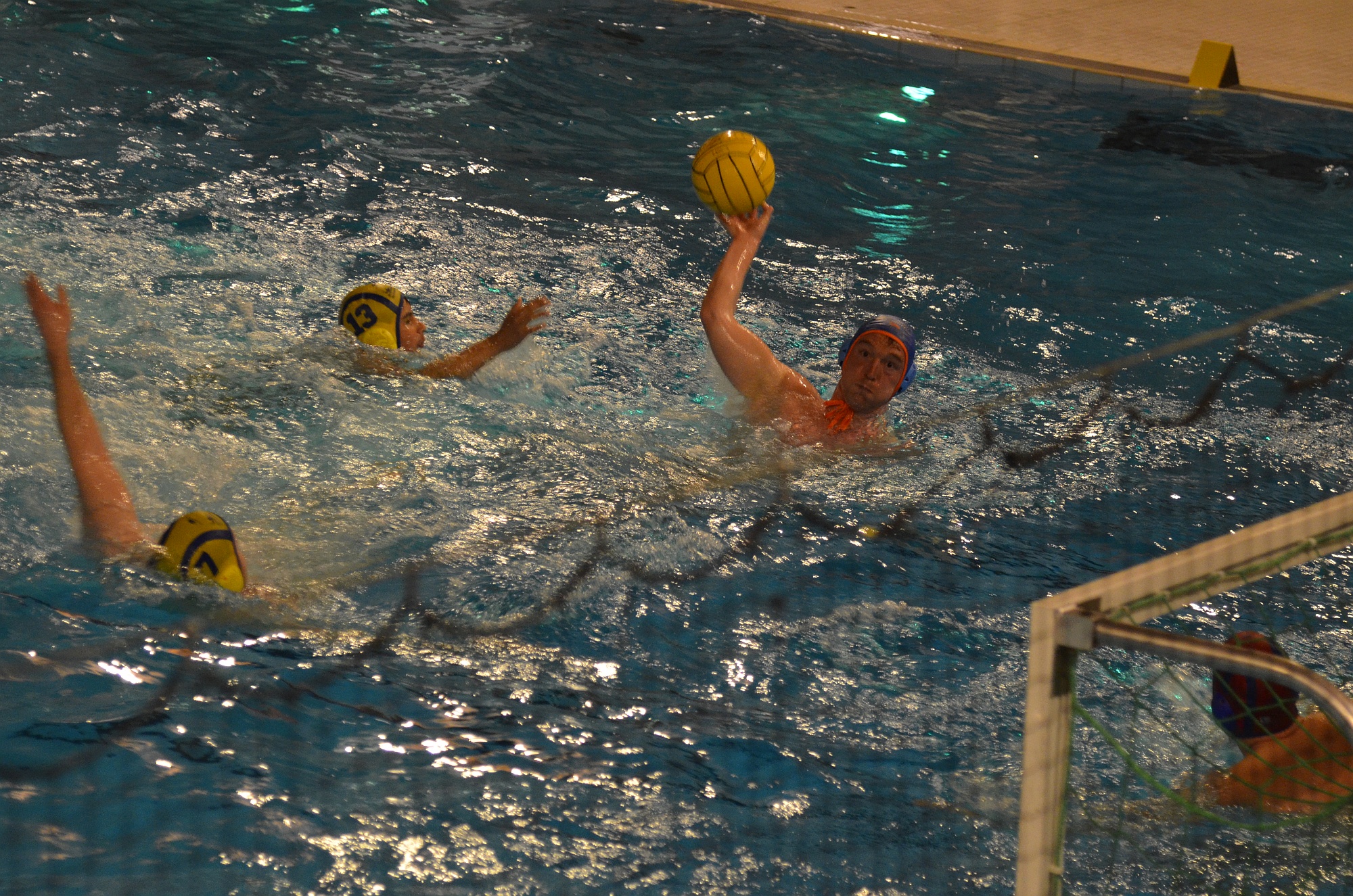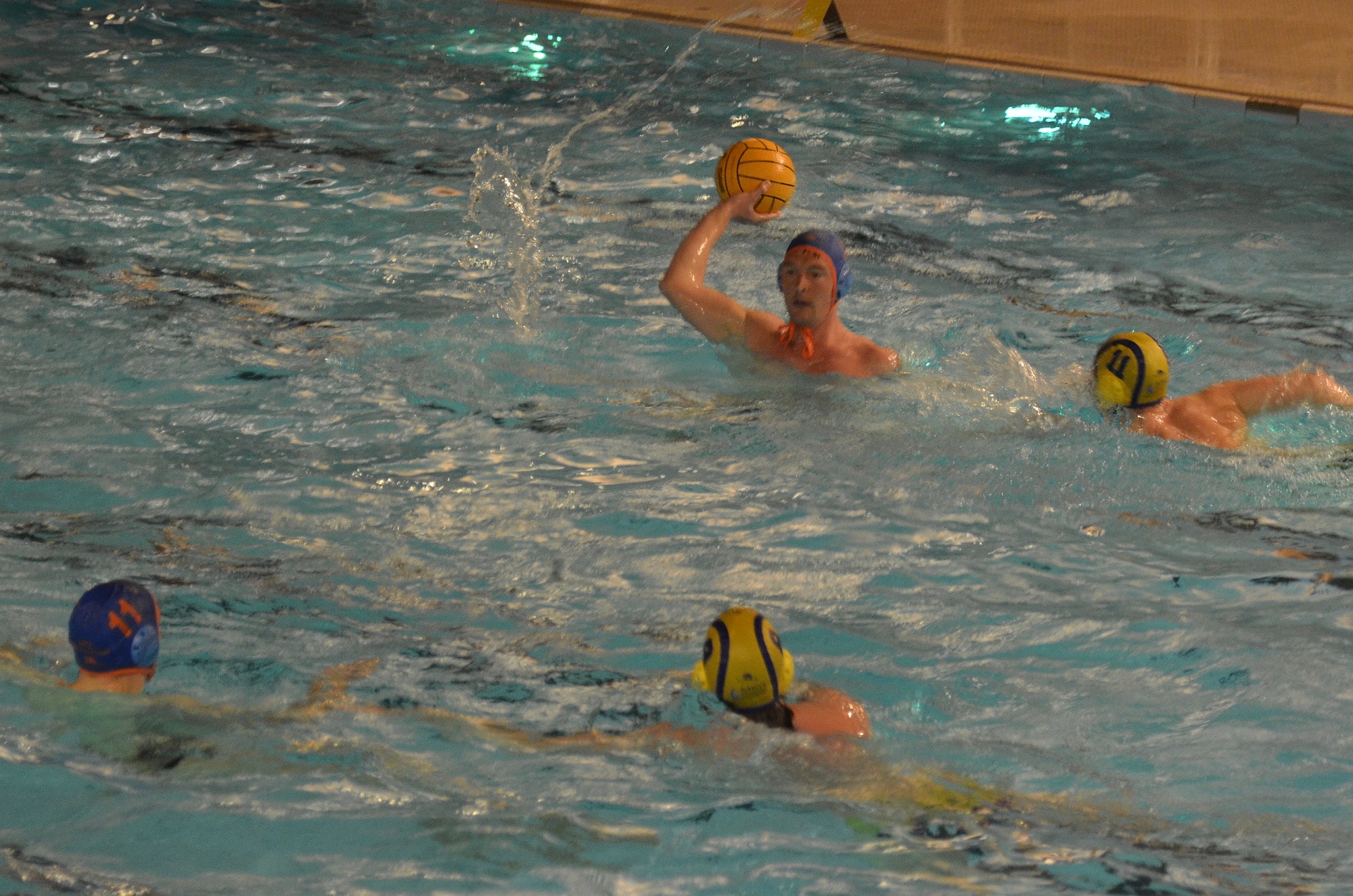 Von Beginn an schien die Partie einen klaren Verlauf zu nehmen. Die Gastgeber aus Rüsselsheim konnten sich in der Wiesbadener Schwimmhalle, die uns dankenswerterweise zur Verfügung gestellt wurde, im ersten Viertel mit 5:3 in Führung gehen. Die personell stark aufgetretene Rüsselsheimer Mannschaft konnte so zu Beginn des 2. Spielabschnitts auf 7:3 erhöhen. Doch reichte die starke Besetzung nicht aus, um uns davon zu schwimmen. Die Wasserballer des VfL Michelstadt kämpften weiter um jeden Ballgewinn und jeden Torabschluss. So stand es Mitte des dritten Viertels plötzlich wieder 9:9.