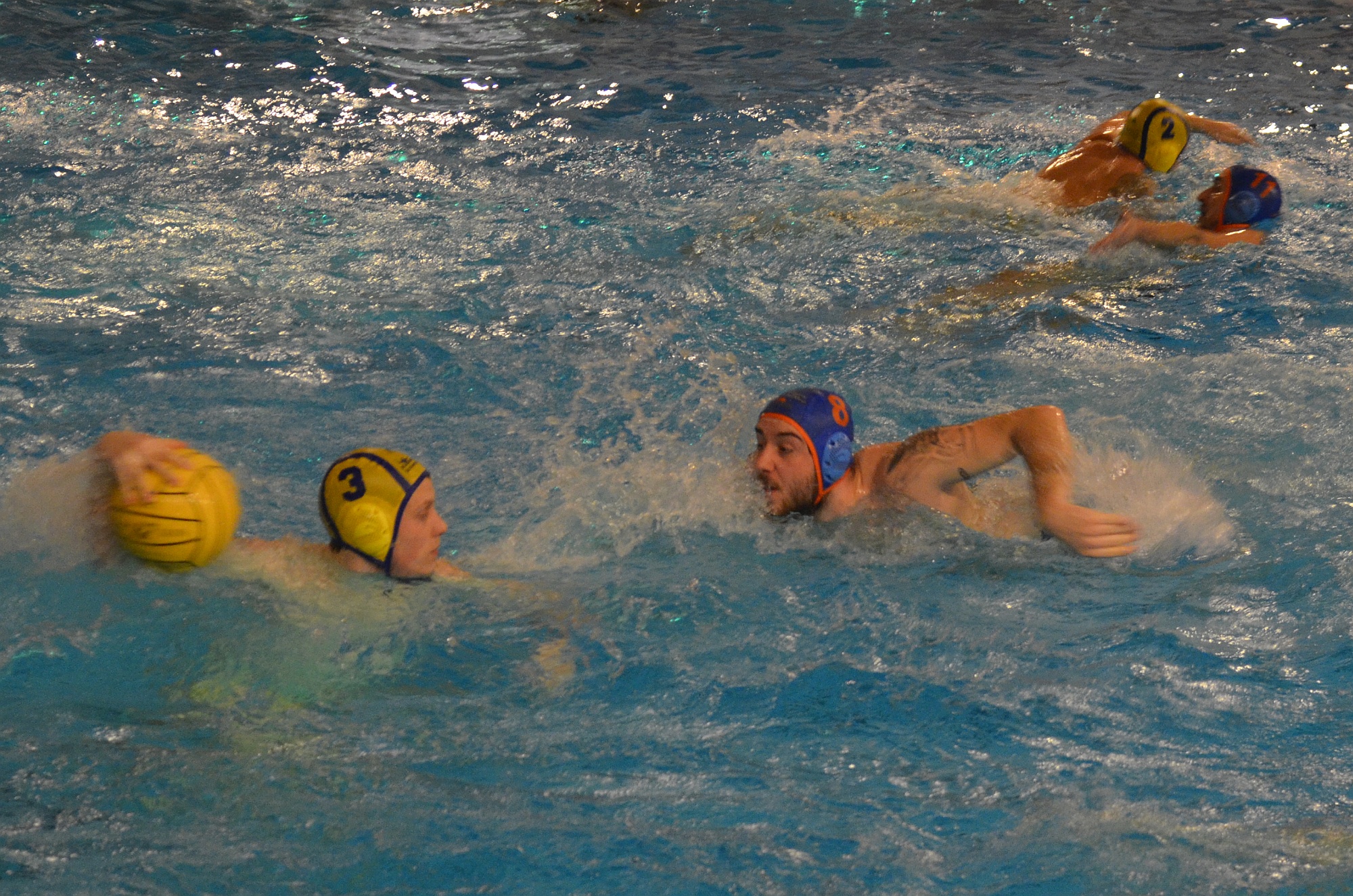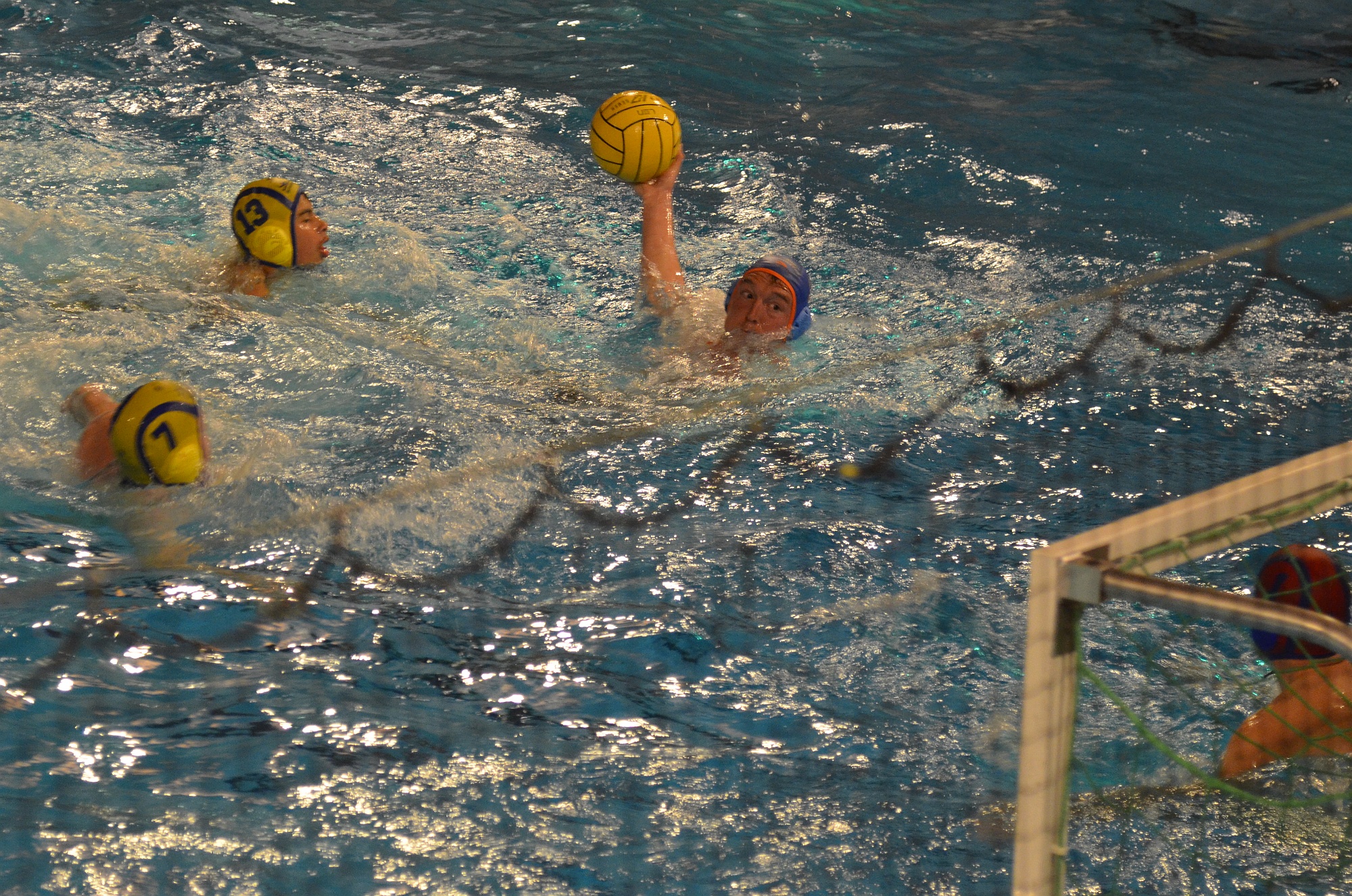 Von Beginn an schien die Partie einen klaren Verlauf zu nehmen. Die Gastgeber aus Rüsselsheim konnten sich in der Wiesbadener Schwimmhalle, die uns dankenswerterweise zur Verfügung gestellt wurde, im ersten Viertel mit 5:3 in Führung gehen. Die personell stark aufgetretene Rüsselsheimer Mannschaft konnte so zu Beginn des 2. Spielabschnitts auf 7:3 erhöhen. Doch reichte die starke Besetzung nicht aus, um uns davon zu schwimmen. Die Wasserballer des VfL Michelstadt kämpften weiter um jeden Ballgewinn und jeden Torabschluss. So stand es Mitte des dritten Viertels plötzlich wieder 9:9.